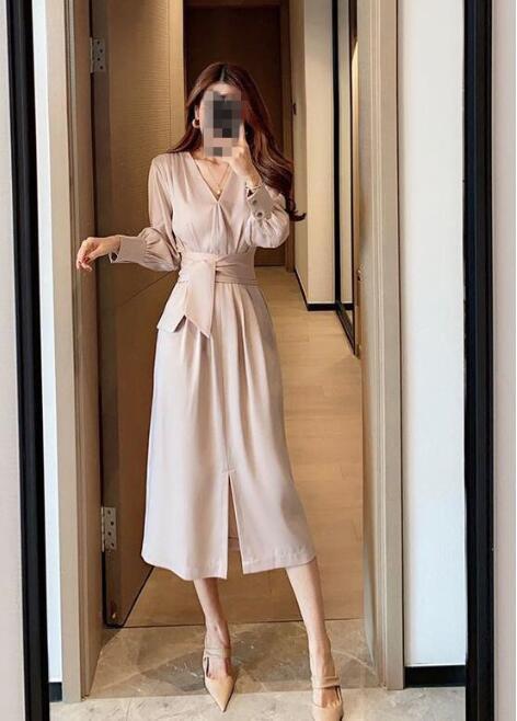 - 夏新作 上質レディースワンピースOL 通勤 sexy 大人 二次会ドレス ロング丈 ベージュYWQ1590