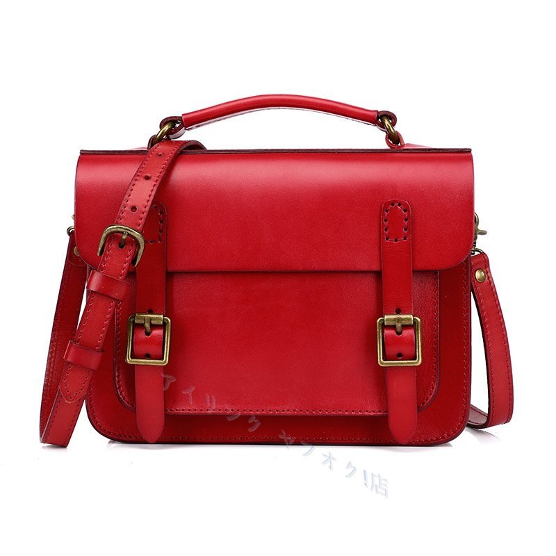 - ☆新品超 最高の贅沢 本革 手染め手縫い 栃木レザーショルダーバッグ 総本革 ハンドバッグ書類鞄 ビジネス /赤
