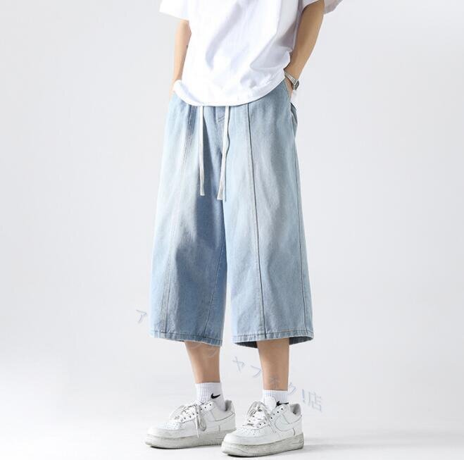 - ☆新品クロップドパンツ メンズ デニムパンツ ジーパン ジーンズ ボトムス ショートパンツ ライトブルー サイズ選択可