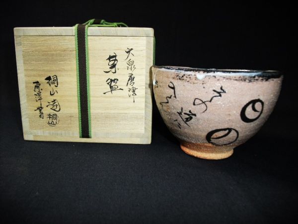 - 【睦】琴浦窯 四代 和田桐山造 大泉唐津 絵唐津 染付 茶道具 抹茶茶碗共箱■