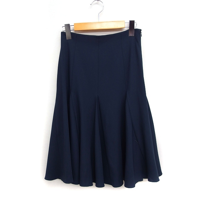 - クイーンズコート QUEENS COURT フレア スカート ひざ丈 無地 シンプル 1 ネイビー 紺 /FT8 レディース
