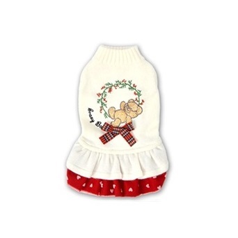 > 新品★ペット服★CRAZYBOO★くまさんリースワンピース★XLサイズ★オフホワイト★胴回り45~47cm★クリスマス★犬服★24