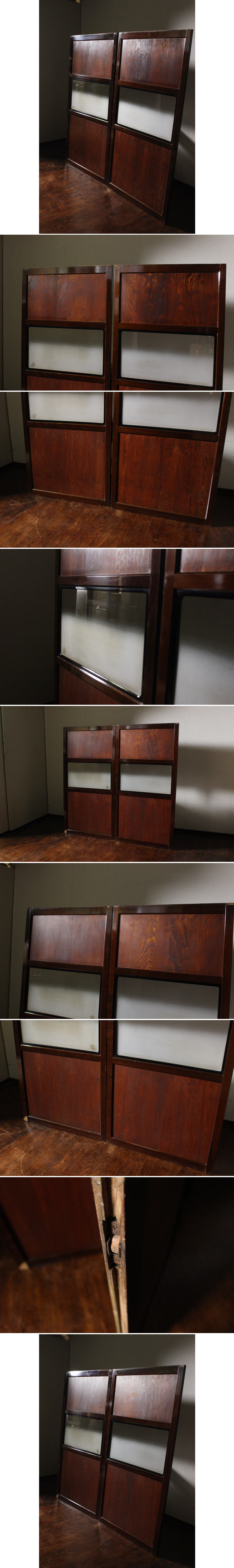 - アンティーク・レトロ 古いガラス入り木製帯戸・2枚 板建具板戸古民家再生カフェ町屋和モダンパーティション
