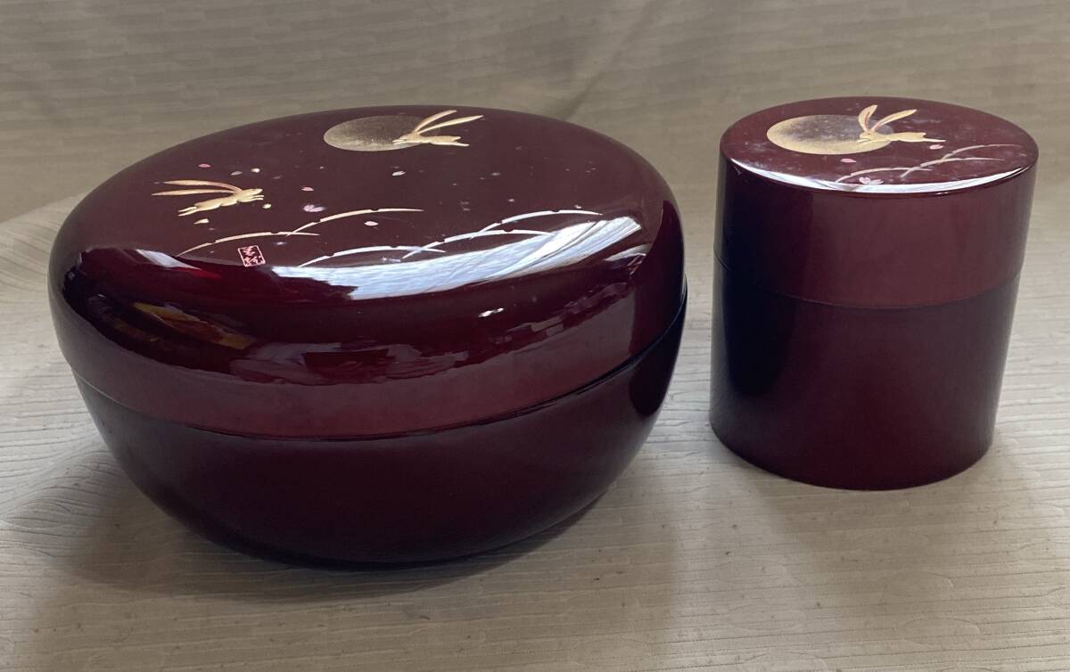 - お菓子入れ/茶菓子入れ 茶筒/お茶葉入れ 月の兎柄 昭和レトロ品 現在ギフトでは無い♪♪未使用品