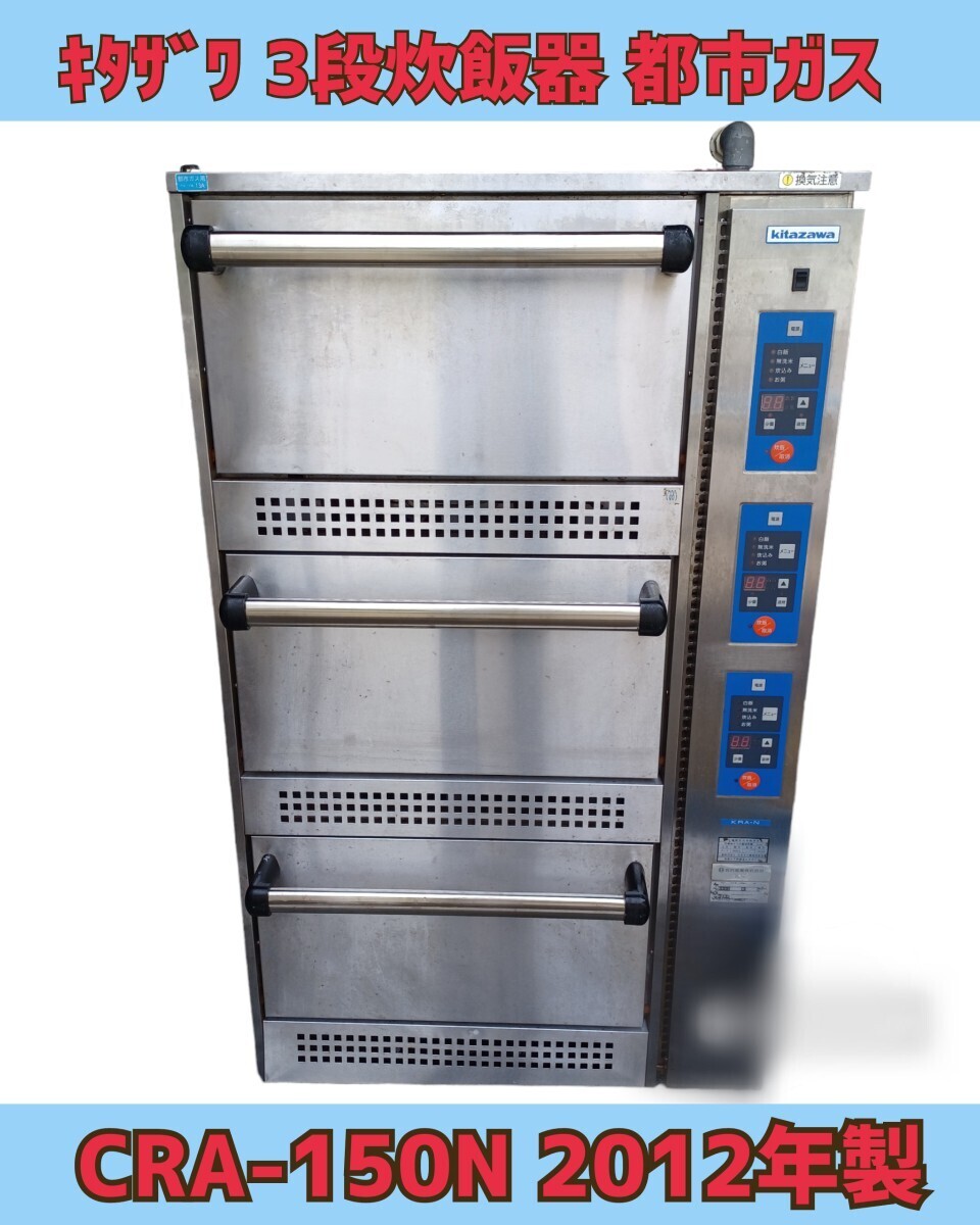 > 石⑤ 【引取限定/愛知県】北沢産業 立体炊飯器CRA-150N 都市ガス 3段 2012年製 炊飯鍋 業務 厨房 キッチン レストラン 飲食店 240606