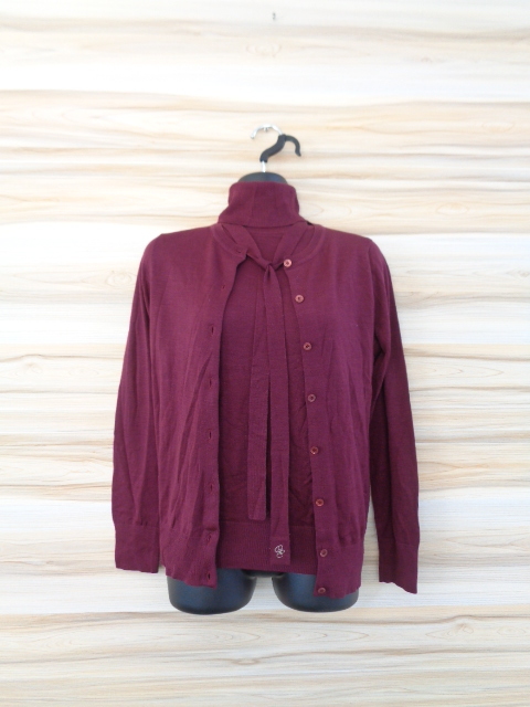 - 2306【本州のみ送料無料】OLD ENGLAND オールドイングランド レディースニットアンサンブル カディガン+半袖タートルネック ボルドー