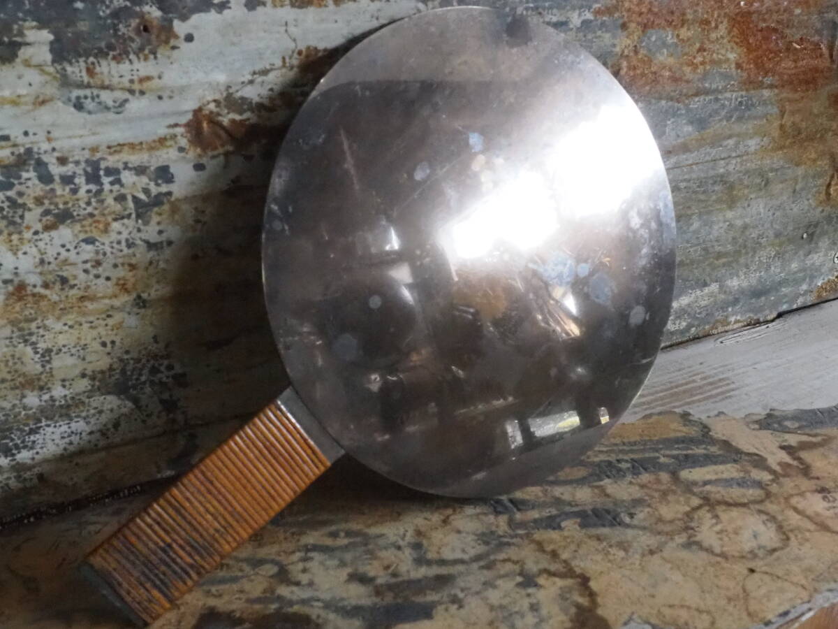 - 【江戸時代 天下一 藤原吉長 銅鏡】和鏡魔鏡木製漆塗り古道具アンティーク骨董インテリアインダストリアル化粧鏡ミラー手鏡