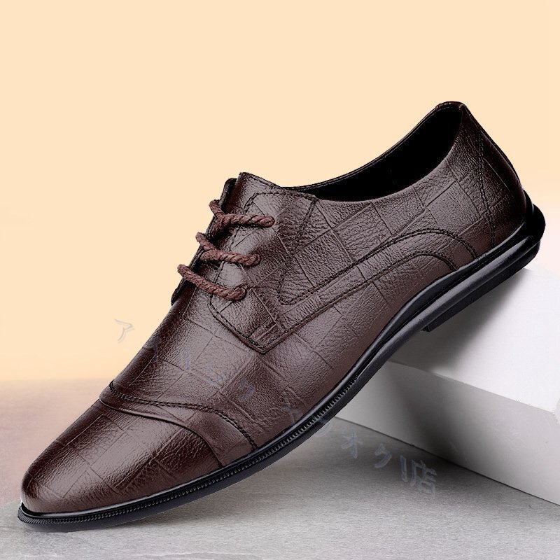 > ☆新品メンズ ビジネスシューズ レザーシューズ 牛革 革靴 ドライビングシューズ ローファースリッポン 柔らかい ブラウン 24~27cm