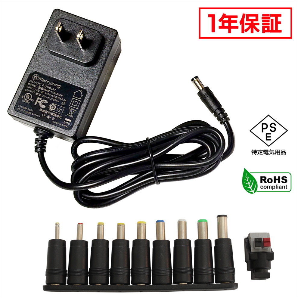- ACアダプター 汎用電源 12V 3A 36W 10種セット 5.5mm 2.1mm PSE認証 1年保証