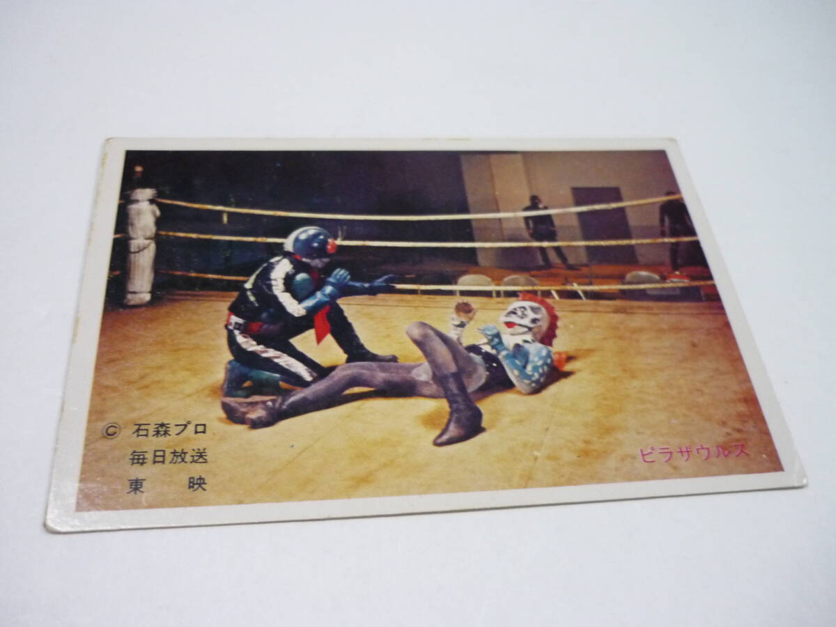 > [管00]【送料無料】カード 駄菓子屋 ピラザウルス 仮面ライダー 横 リング 当時物 石森プロ 東映 特撮 ブロマイド L版