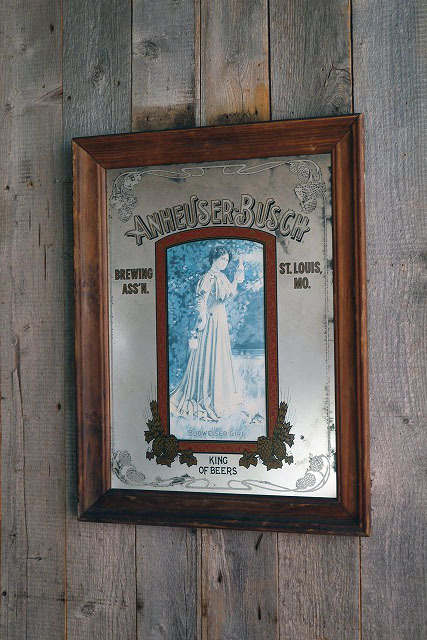 - ビンテージANHEUSERBUSHパブミラー [gop-330]検アメリカ/USA/アルコールドリンク貴婦人デザイン/クラシック/鏡/雰囲気重視70年代頃