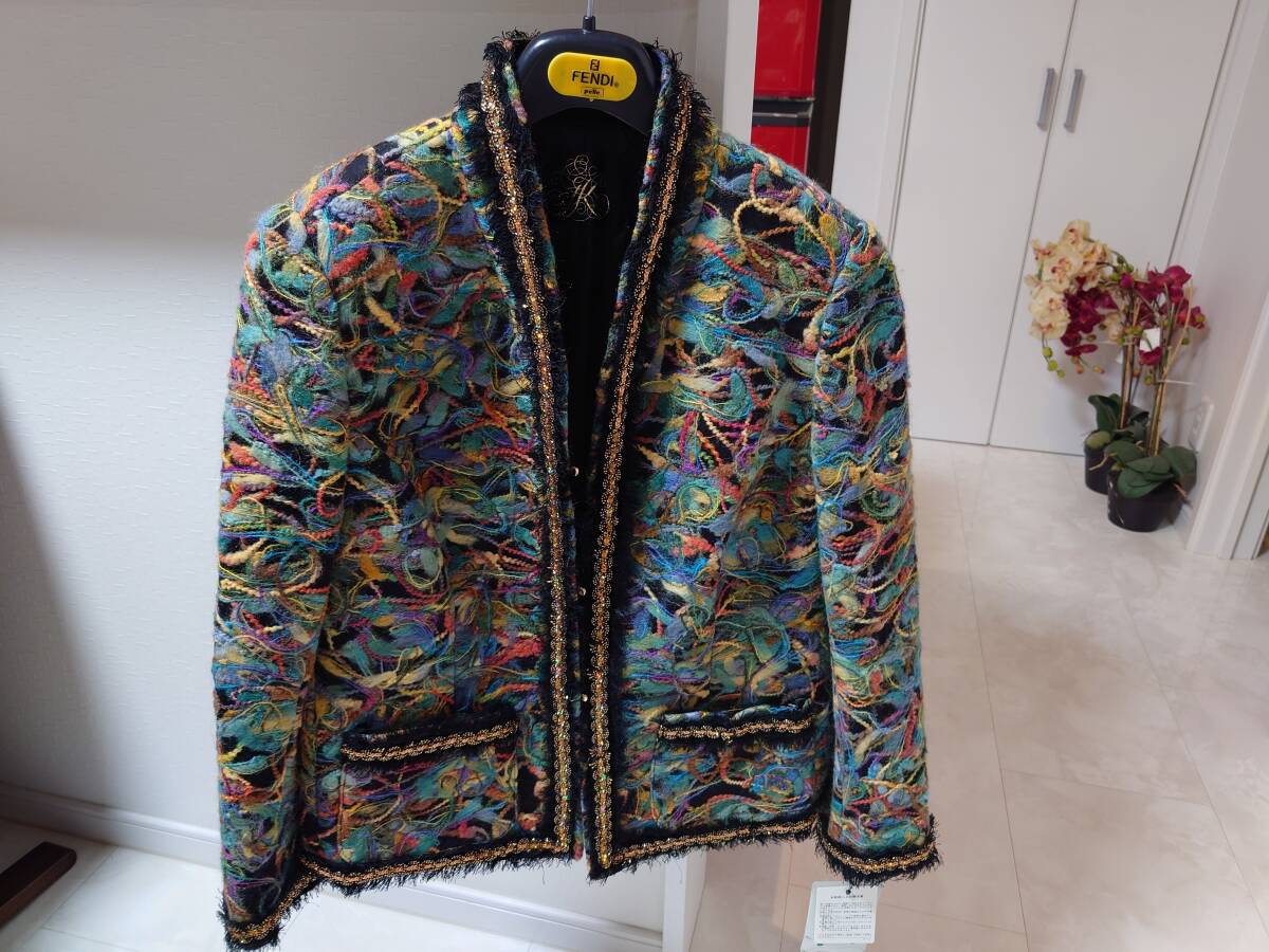- 伊太利屋 イタリヤ モヘアブレンド ノーカラー ジャケット ビーズ スパンコール ベロア ゴールド 13