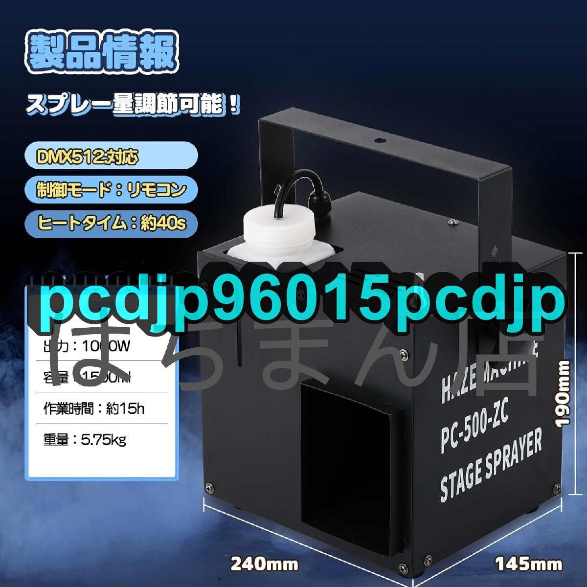 - 1000W フォグマシン 薄い型 スモークマシーン DMX512対応 リモコン制御 1500ml容量 約5hの作業時間 3mの噴出距離 100-150㎡の噴出面積