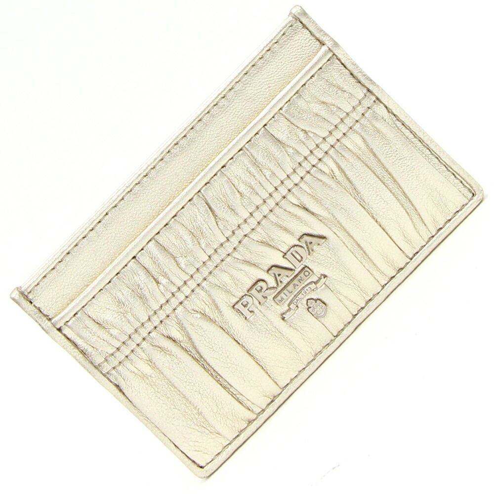 - プラダ カードケース 1MC208 シャンパンゴールド レザー 中古 カードホルダー パスケース 定期入れ ギャザー ロゴ