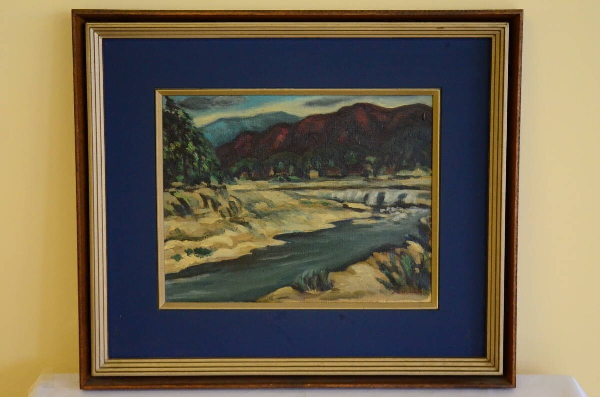 ご落札者様のために誠心誠意ご対応させていただきます富田豊三郎 馬畔風景 油彩 F6号 山形風景画 額装55.5cm×63.5cm