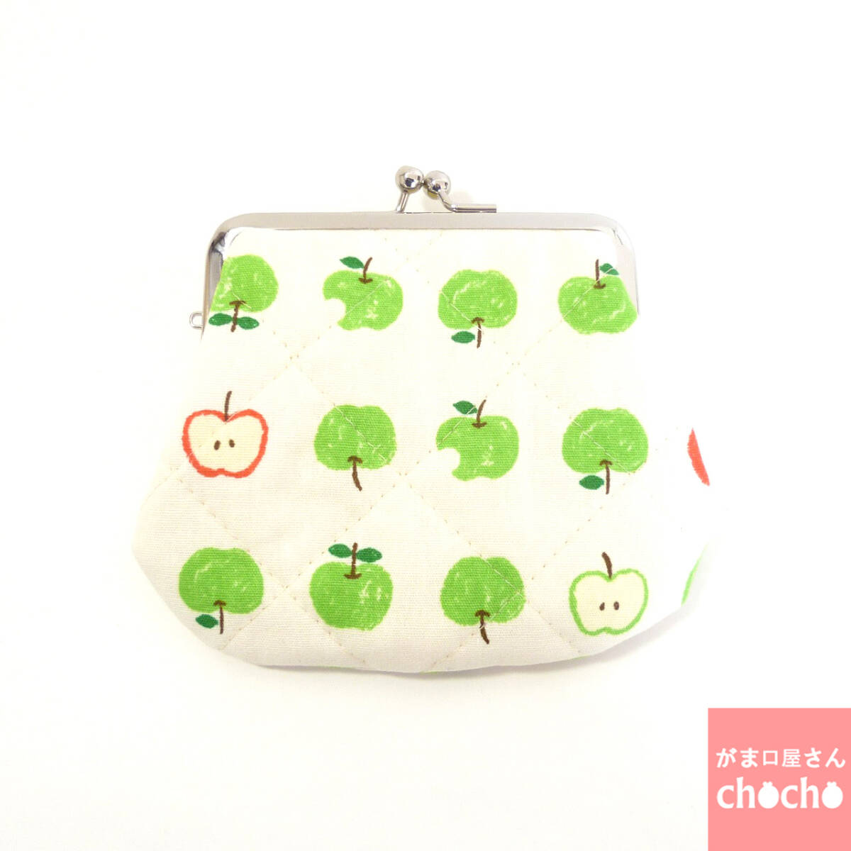 - がま口 ポーチ 青りんご 白 キルティング生地 ミニポーチ ハンドメイド G323