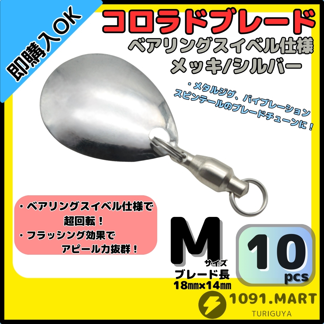 > 【送料150円】コロラドブレード メッキ/シルバー Mサイズ 10個セットボールベアリングスイベル付き スピンテールブレード ブレードチューン