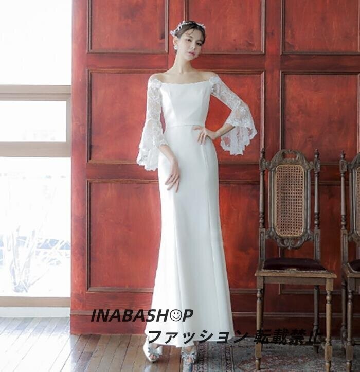 > ウエディングドレス ウェディングドレス ファスナータイプ レースマーメイドラインロングドレス 肩出し 披露宴結婚式 演奏会海外挙式ドレス