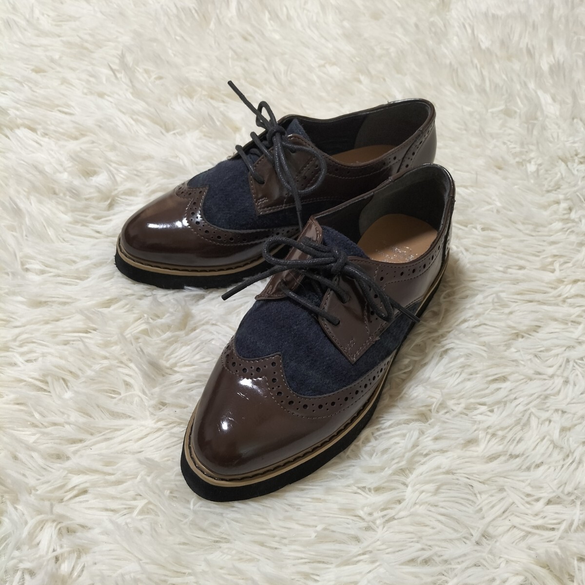 - 美品★エンチャンテッドプリマ ローファー ウイングチップ レースアップシューズ エナメル レザー ブラウン ブラックウォッチ 革靴 USED