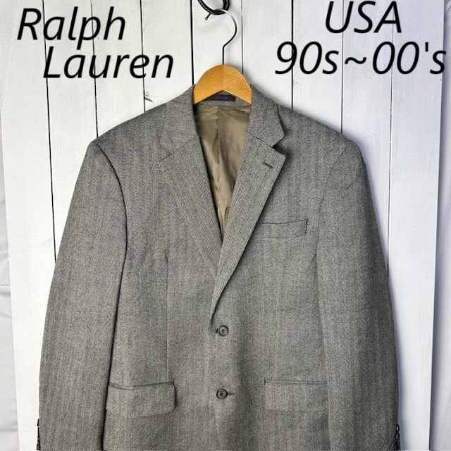 > USA古着 90s~ Ralph Lauren ヘリンボーンウール 2Bテーラードジャケット 38R グレー オールド ラルフローレン 秋冬春 S~M ●184