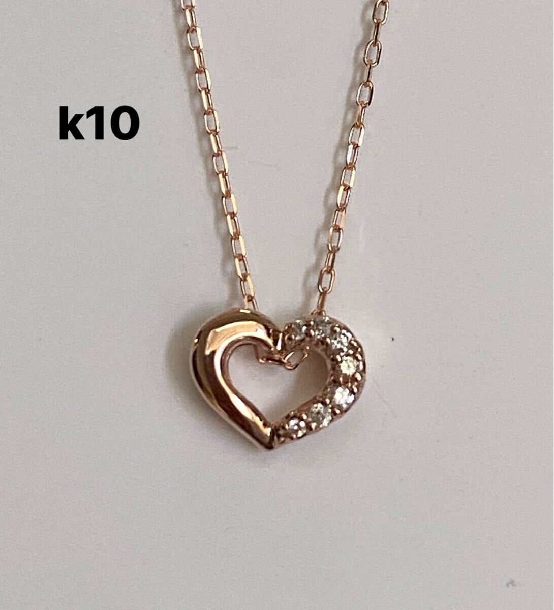 - 天然ダイヤモンドペンダント K10ネックレス ピンクゴールド ハートペンダントトップ 40CM 調整可能