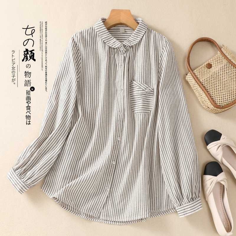 - OHJ706★2色秋春シャツ ブラウス レディース チュニックトップス ボーダー柄長袖お洒落 カジュアル風可愛いシャツブラウス ホワイトM-2XL