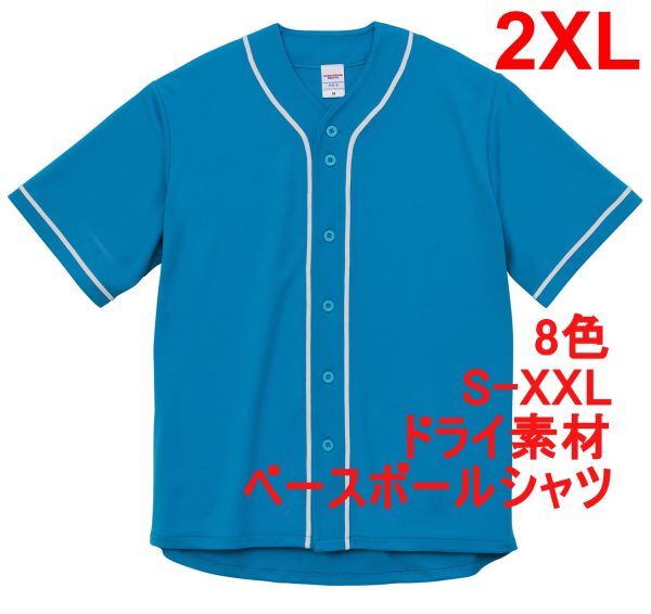- ベースボールシャツ XXL ターコイズ ブルー 野球 ユニフォーム 無地 ドライ ドライ素材 吸水 速乾 シンプル ベーシック A2031 2XL 3L 水色