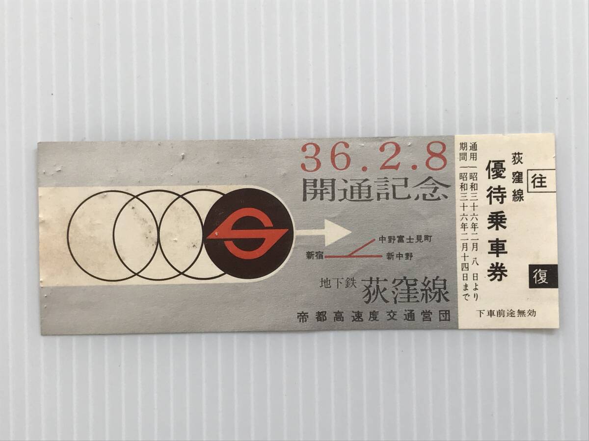 - 昔の切符 記念切符 地下鉄荻窪線開通記念 昭和36年2月8日 帝都高速度交通営団 優待乗車券 HF5758 くるり岸田繁