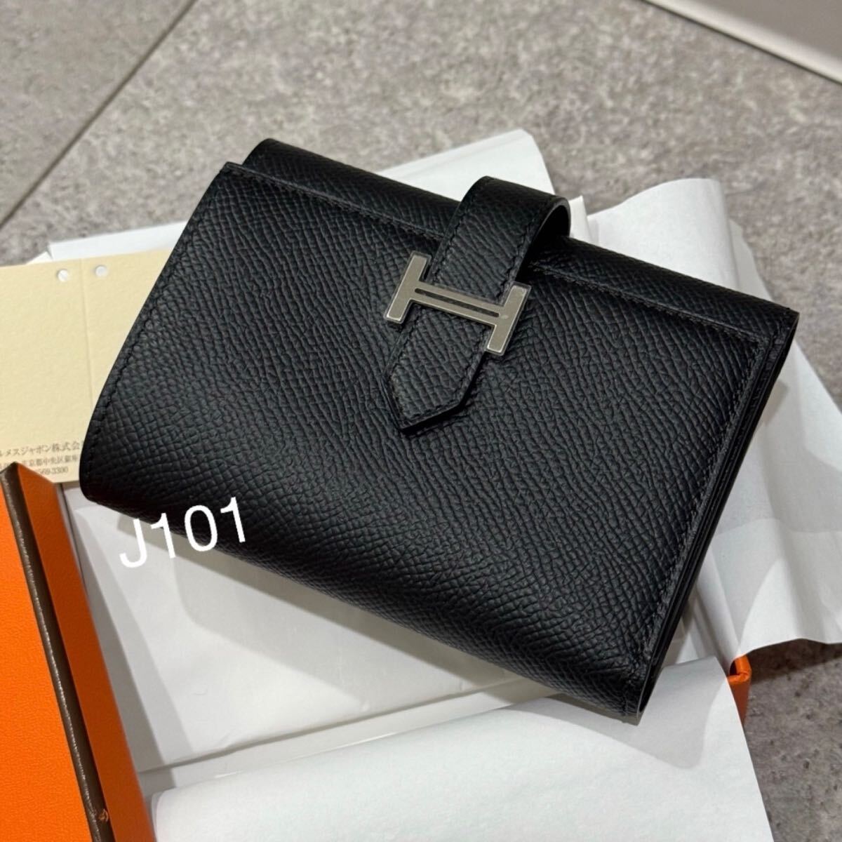 - エルメス べアンコンビネ エプソン ブラック 新品 折り財布 HERMES