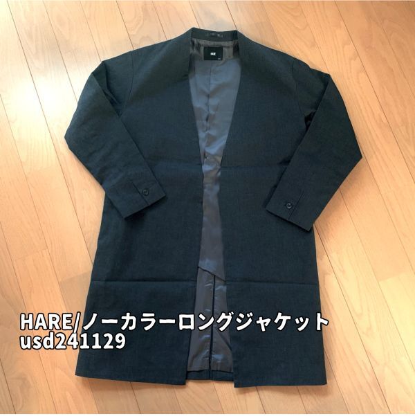 - 【HARE】ノーカラーロングジャケット ライトアウター ロングコート チャコールグレー ミニマリスト usd241129