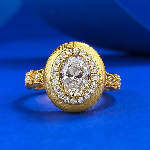 > 18K金メッキ925スターリングシルバーラボダイヤモンドリング、米国サイズ7(日本の14号相当)、最初の入札者様は開始価格で購入可能 Kn