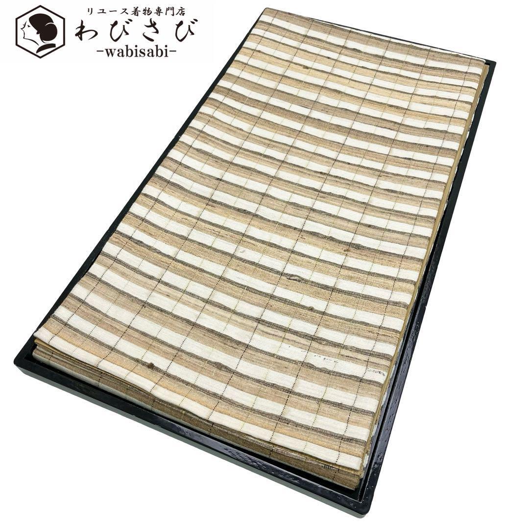- 袋帯 ムガシルク 野蚕 横縞模様 黄土色 乳白色 カジュアル O-4413