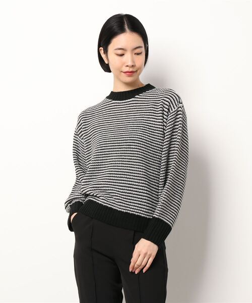 > ★新品タグ付き ehka sopo エヘカソポ サマンサモスモス 配色ボーダーニット 黒系 フリーサイズ 5390円のお品