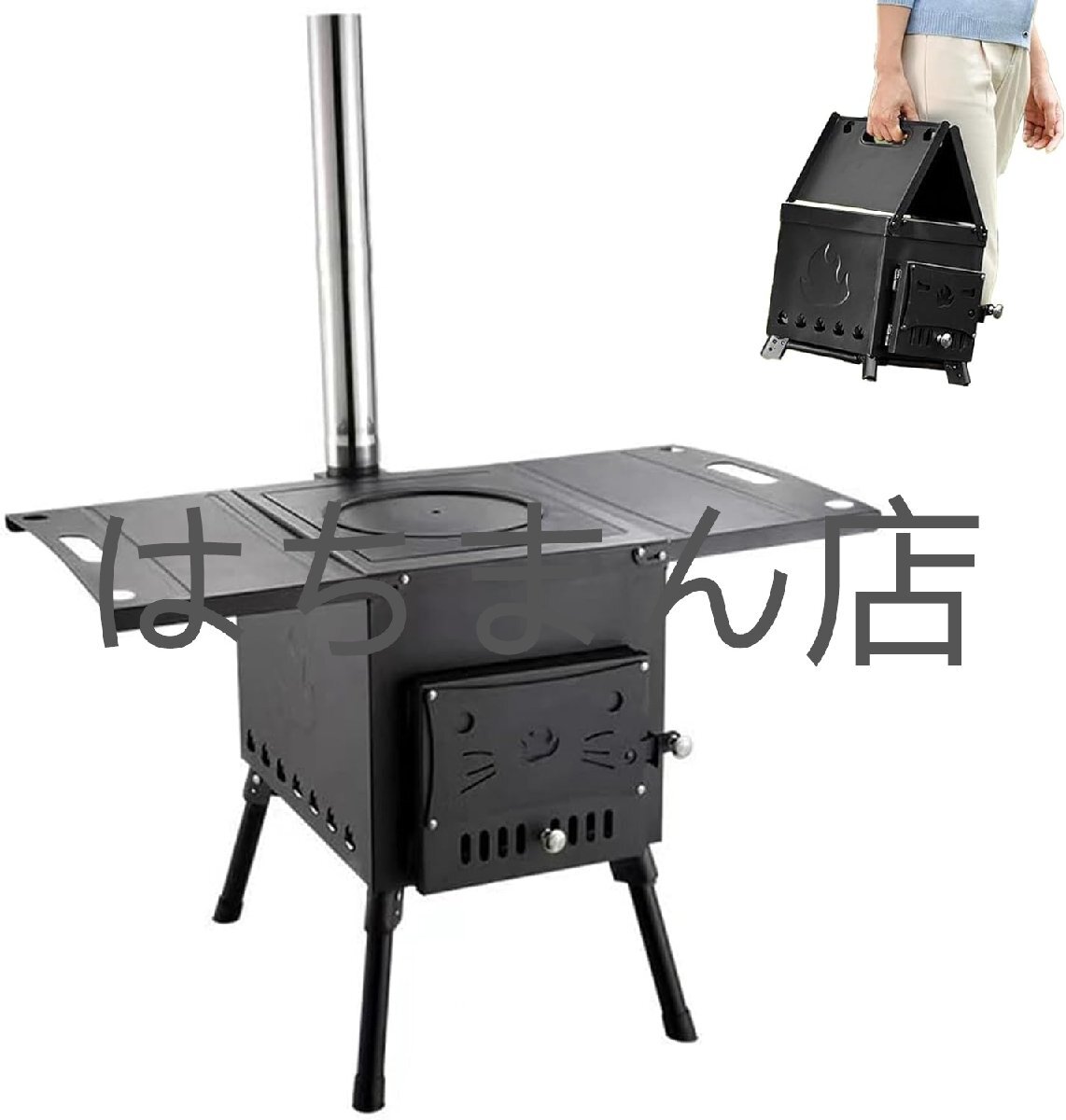 - 薪ストーブ 煙突 折りたたみ キャンプ ストーブ ステンレス製 焚き火台 3in1 グリル/調理/暖房用 コンパクト 携帯便利 黒(熱延鋼板) 58cm