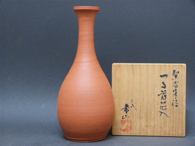 - ◇◆三代 山田常山◇◆梨皮朱泥つる首花入◇◆共箱あり◆◇