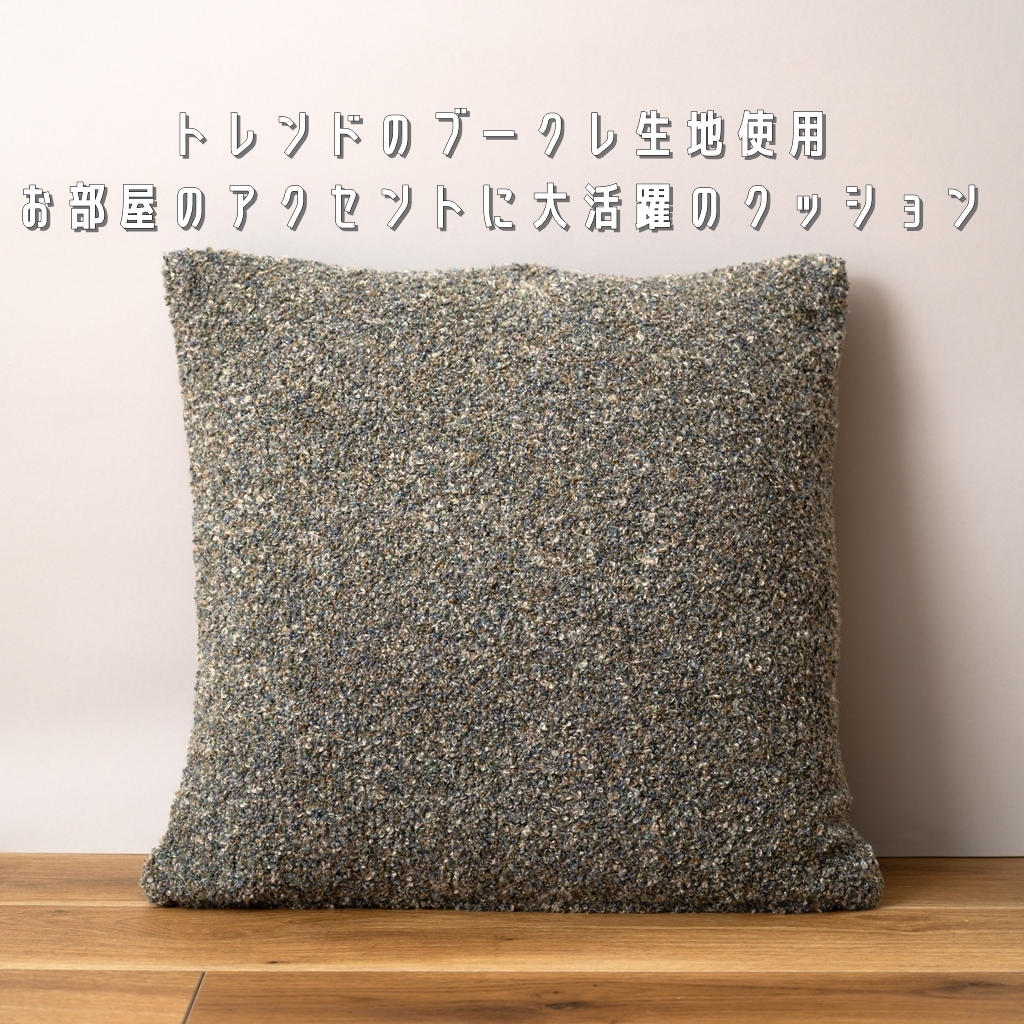 > クッション グリーン 緑 カーキ 正方形 おしゃれ ブークレ生地 スクエア 無地 もこもこ 北欧 モダン FAB-103GR