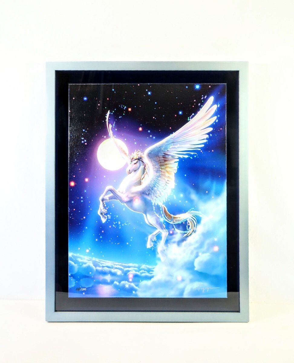 > 真作 KAGAYA 2006年ジクレー「ペガサス自由の翼」画51×69cm 埼玉県出身 CG作家 海から生まれ知性を備えた白く強い翼 地と天空を翔る 10033