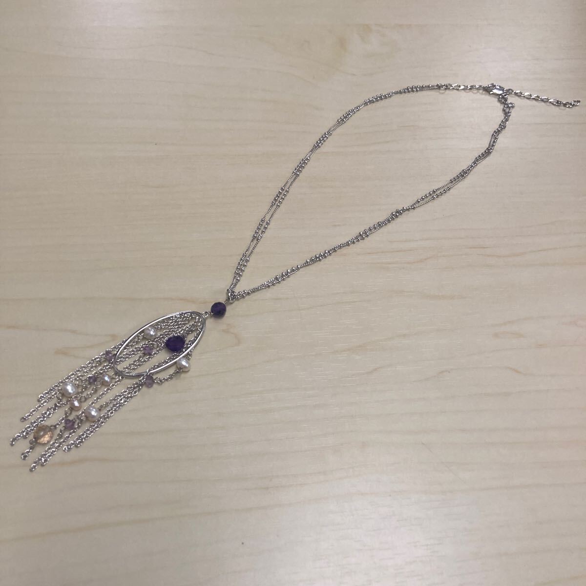 - 925 アメジスト/パール 2連ネックレス シルバーネックレス 41cm-48cm 13.7g