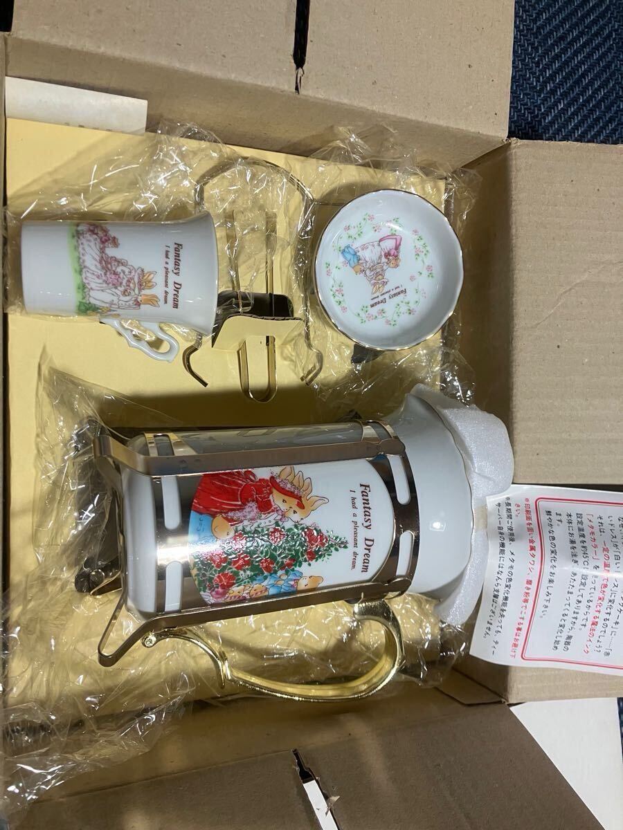 > ◆コレクション放出!未使用! ファンシー 昭和レトロ Fantasy Dream ティーサーバーセット 4人用 陶器製 G-3233 レトロポップ 当時もの