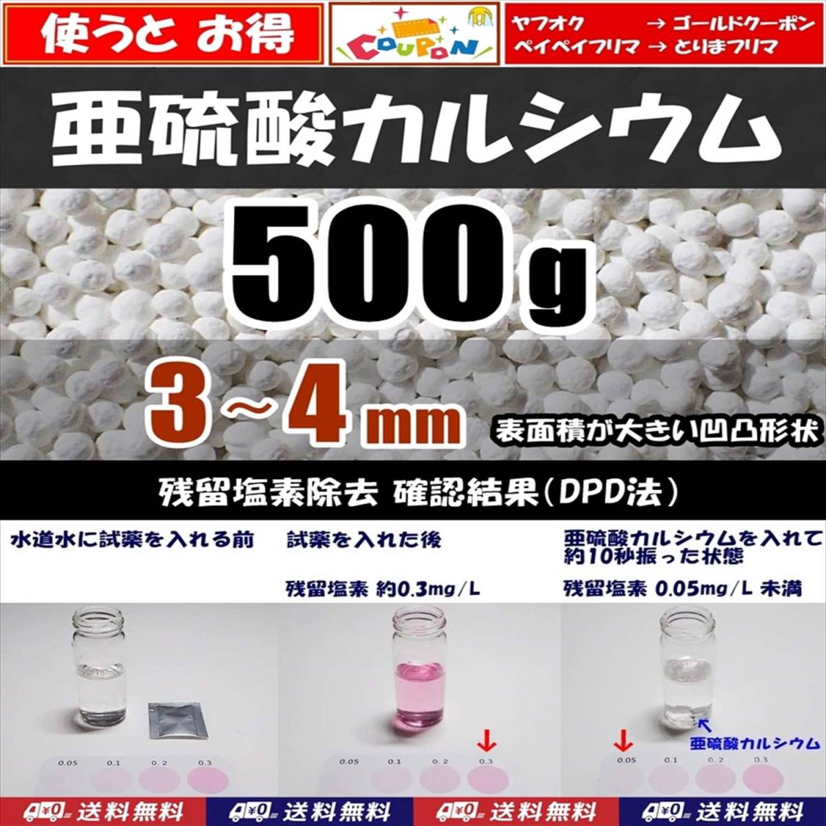 - 【送料込】亜硫酸カルシウム 3~4mm 500g 水道水中の残留塩素除去・浄水カートリッジの交換用等に 脱塩素