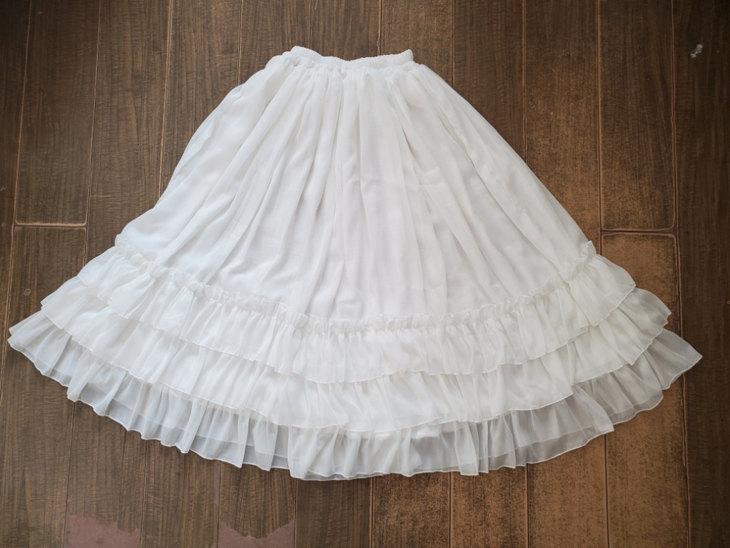 - ロリータ スカート ペチコート ロング パニエ フリル3枚重ね 夏春秋 涼しい ふんわり かわいい ゆめかわいい ホワイト ベージュ ブラック
