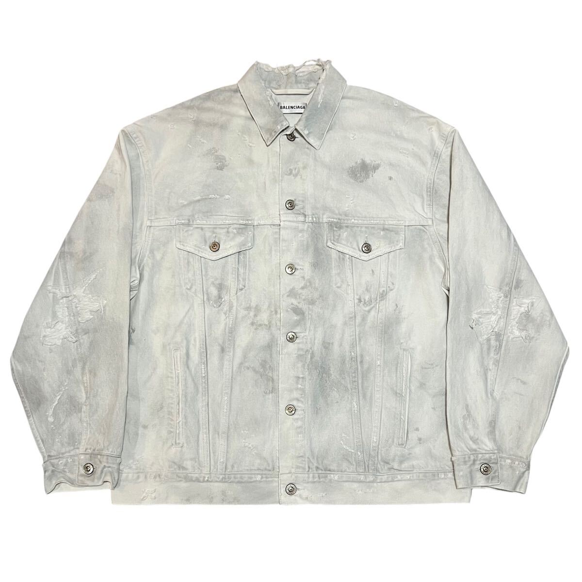 - BALENCIAGA 2021SS DISTRESSED THRASH WHITE DENIM JACKETバレンシアガ 2021春夏 ディストレススラッシュ ホワイトデニムジャケット 642904