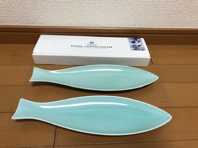 > 新品本物のロイヤルコペンハーゲン、フィッシュプレート2枚組★7980円即決★水色、セット、フィッシュトレイ、魚型のお皿