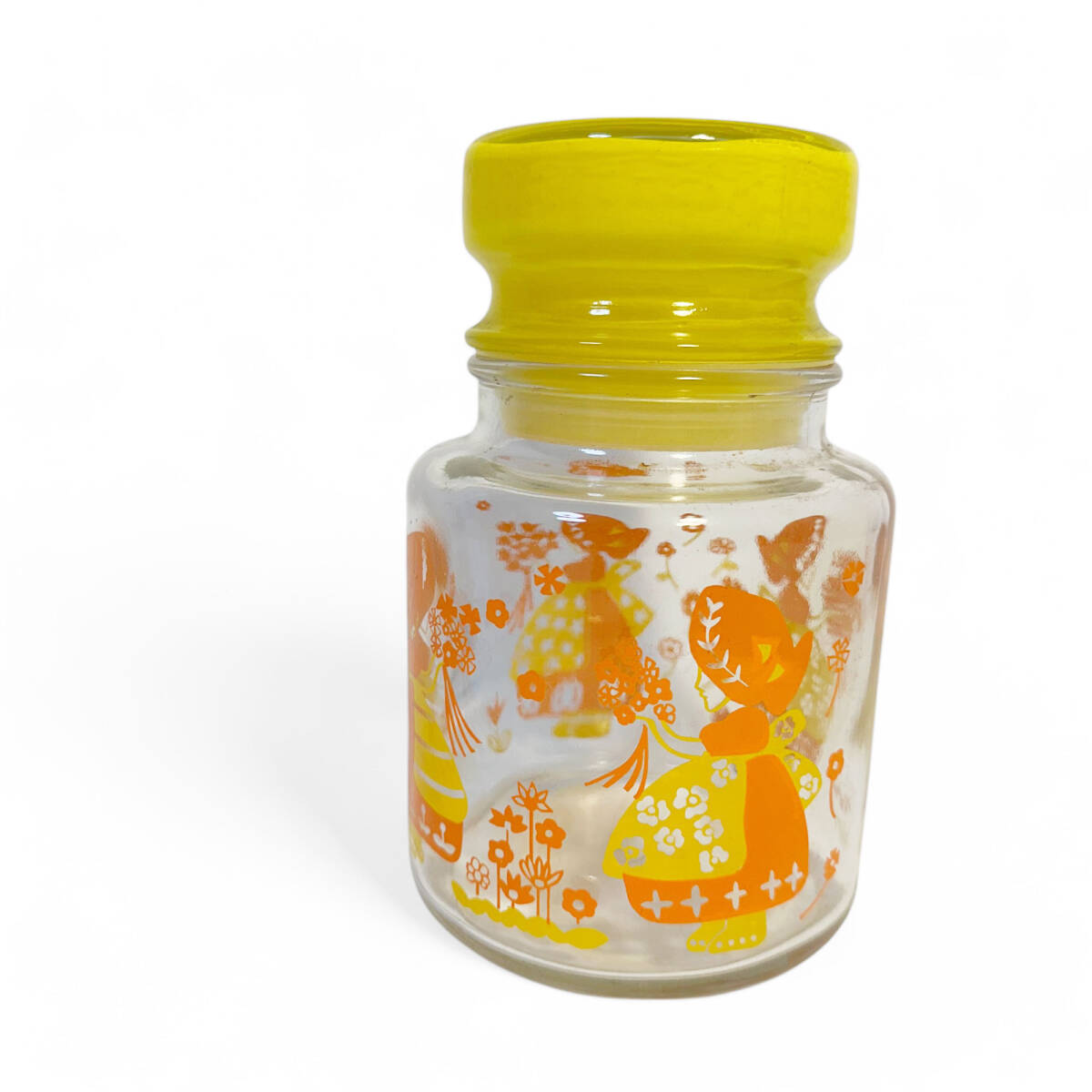 - K2412-6 レトロ ガラス キャンディポット 花柄 ファンシー雑貨 レトロポップ 昭和レトロ