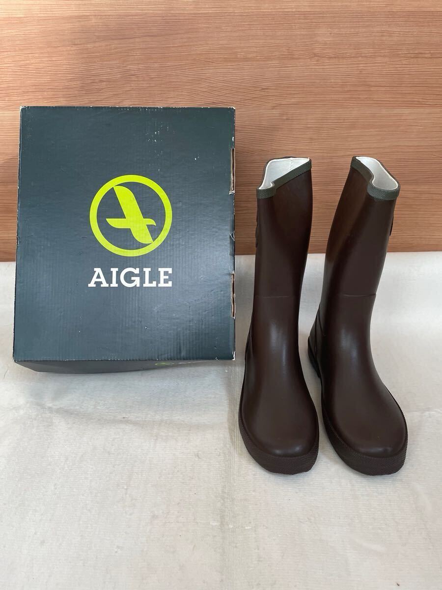 - 訳あり 未使用 長期保管品 AIGLE エーグル レディース キッズ 長靴 レインブーツ ラバーブーツ ブラウン サイズ34 (22cm) おしゃれ長靴