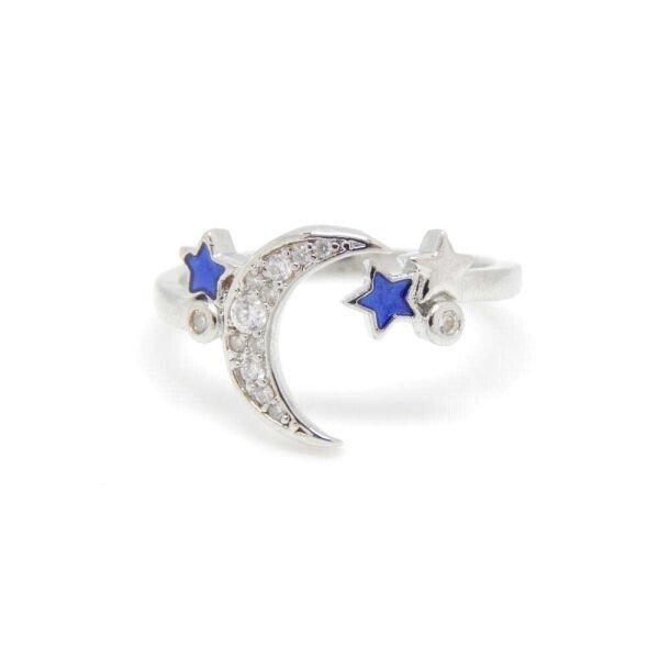 > 新品★送料無料 星と月デザイン ブルースター CZダイヤモンドリング XR-S17 訳有品 凹み傷 フリーサイズ レディース アクセサリー シルバー