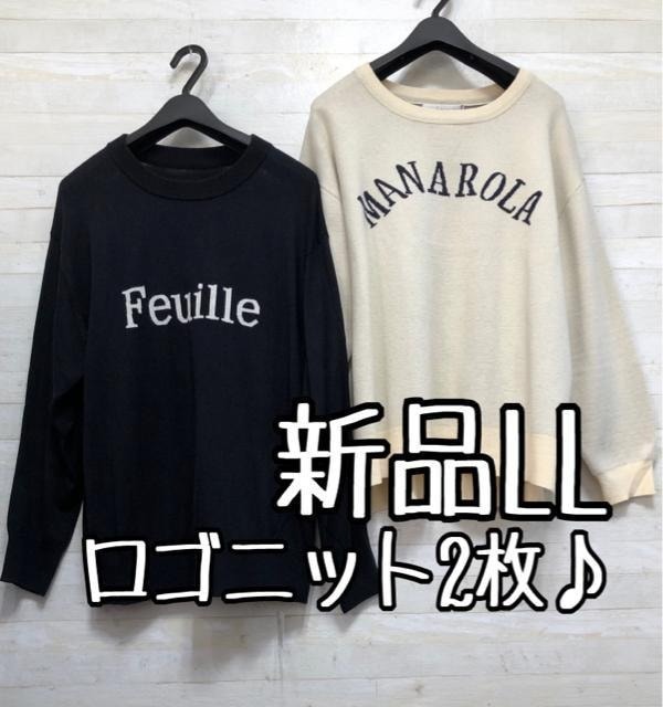 - 新品☆LLアイボリー&黒系♪おしゃれなロゴニット2枚セット〇B548