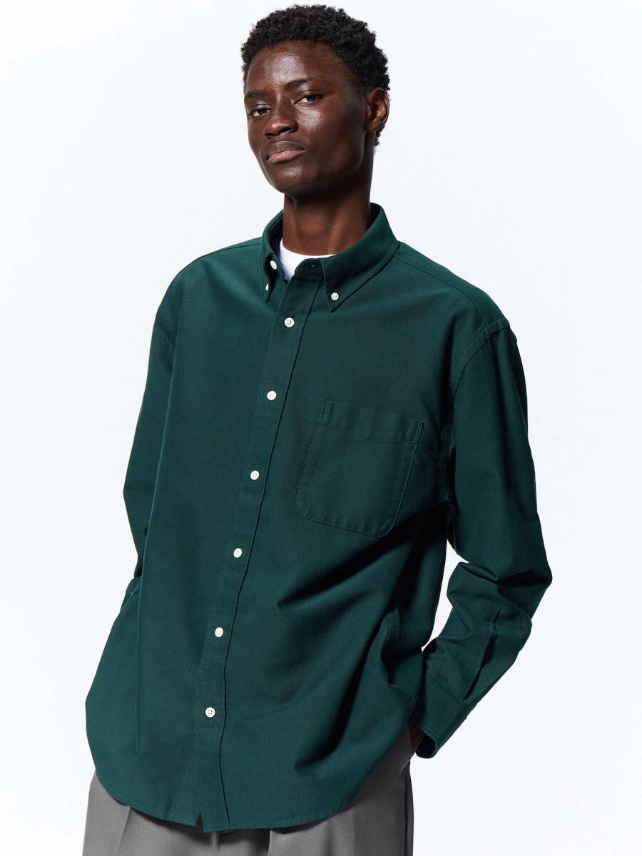 - 新品未開封品 ジーユー ツイルシャツ XXL オンライン特別商品 ダークグリーン GU コットン100% メンズ カジュアルシャツ 未使用品タグ付き
