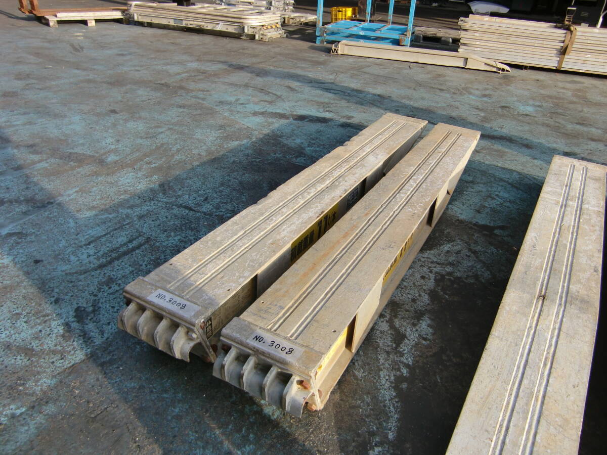 - 油谷 №3008 アルミブリッジ 長さ2200㎜ 幅260㎜ 耐荷重22トン 積載 歩み板 セルフ 回送車 パワーブリッジ 引っ掛け爪 中古 重機農機