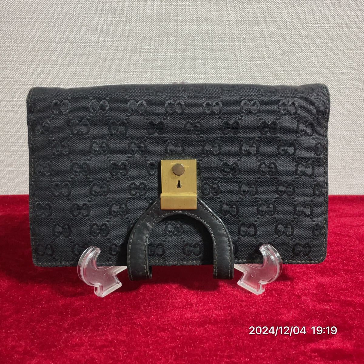 - vintage GUCCI グッチ GGロゴ キャンバス レザー 革 メイク アクセサリーケース 小物 二つ折り ポーチ バッグ